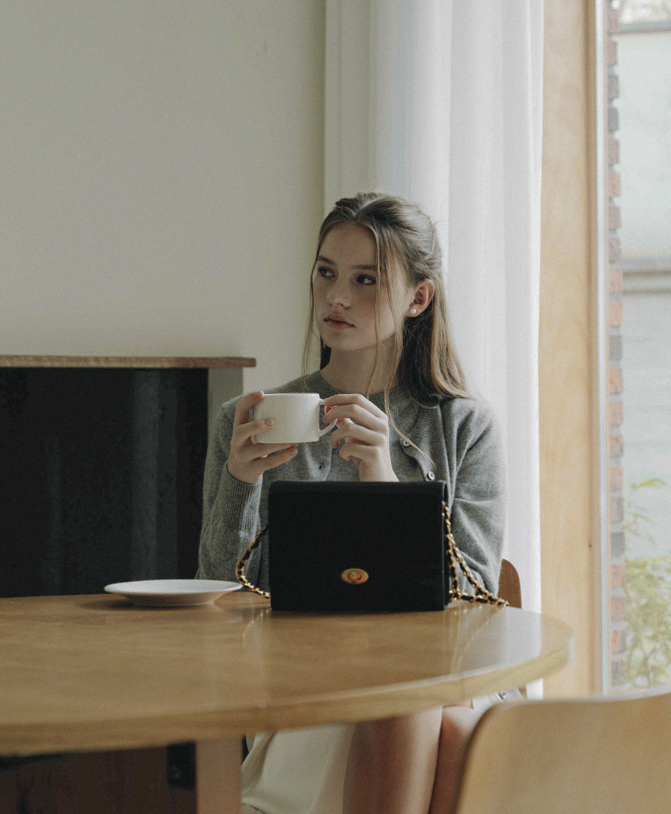 각진 사각 형태에 금장 버클이 클래식하면서도 고급스러운 분위기를 풍깁니다. 그리고 하객룩에서는 저런 체인백이 한층 더 잘 어울리더라구요. 이 가방을 만들 때 블랙 드레스와 진주 귀걸이를 스타일링 한 여성에게 영감을 받아 단정하고 우아한 분위기를 풍길 수 있도록 만들었다고 하는데, 딱 하객룩에 걸맞는 하객 가방이지않나 싶습니다.